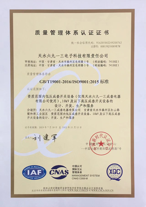質量管理體系認證證書
